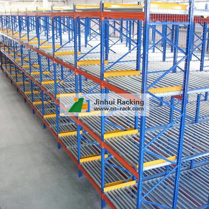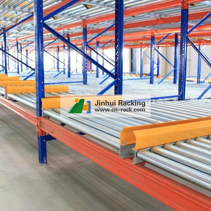 Gravity flow racking is also called pallet flow racking, whose rollers are fixed up in the beam of the shelf at a fixed gradient and then put the pallet from the high side and it will be fallen depending in its own gravitation.
